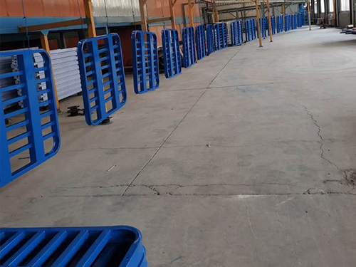 9、托盘上货架时,应保持托盘在货架横梁上地平稳放置,托盘长度应大于货架横梁外径50mm以上。